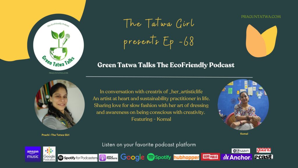 Through my conversation on Green Tatwa Talks with Komal, I was deeply moved by her belief that beauty and responsibility can go hand in hand. She doesn’t preach sustainability—she lives it, wears it, and creates it. Whether she’s in her garden, lost in painting, or crafting something out of scraps, she is always in the flow of creating something meaningful.